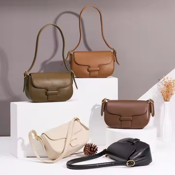 Women’s Leather Shoulder Handbag – Pillow-Style Elegance
